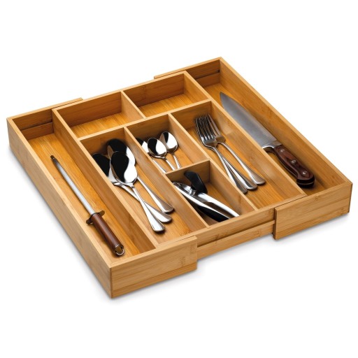 Bambusowy wkład do szuflady na sztućce Tadar z możliwością regulowania – 8 przegródek