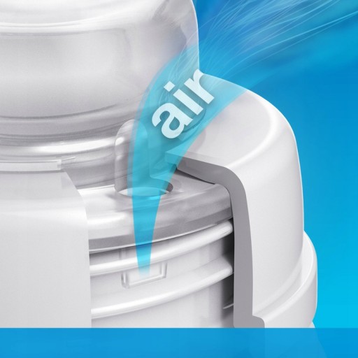 Zmniejsza ryzyko kolki. Zaworek odpowietrzający zapobiega zasysaniu i zapadaniu się smoczka, zmniejszając ryzyko wystąpienia kolki.