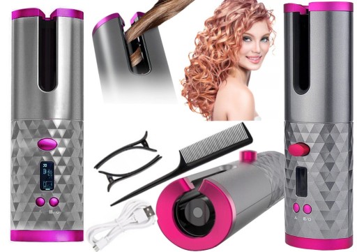- Bezprzewodowa automatyczna lokówka może dowolnie ustawić temperaturę, czas zwijania i kierunek loków (lewy lub prawy).