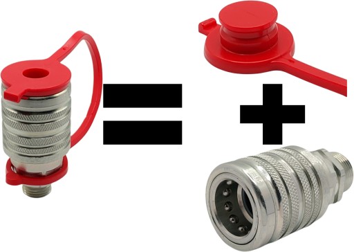 Pokrywa szybkozłącza, zatyczka - chroni szybkozłącze przed zabrudzeniem jednocześnie dając możliwość znakowania linii hydraulicznych (w ofercie następujące kolory: czerwony, żółty, czarny, niebieski, zielony), co zdecydowanie ułatwia oraz skraca czas montażu dodatkowych elementów roboczych.