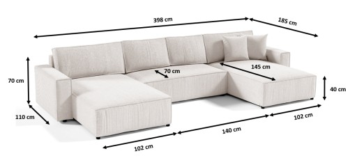- Funkcja spania – powierzchnia spania 344 x 140 cm zapewni komfortowy sen nawet dla dwóch osób