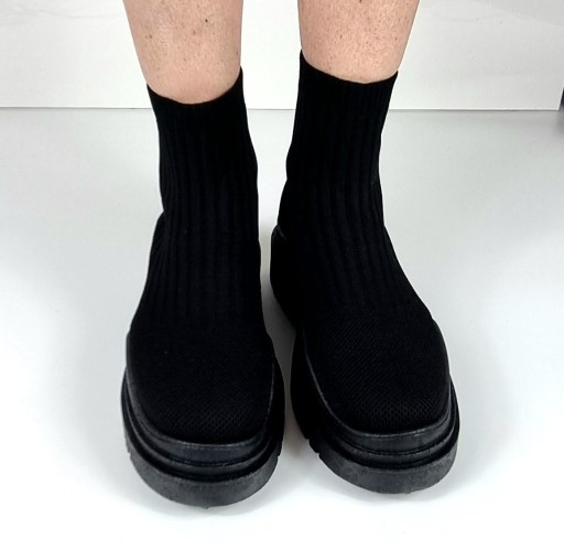NOWE CZARNE BOTKI BUTY Z ELASTYCZNĄ CHOLEWKĄ IMITUJĄCĄ SKARPETĘ