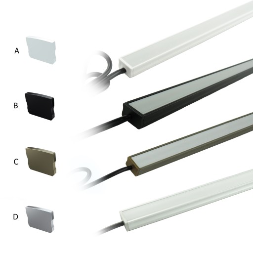 - oprawę LED - materiał aluminium anodowane(czarny, inox, srebrny)/ aluminium lakierowane RAL9016 (biały), zaślepki na końcach - tworzywo sztuczne