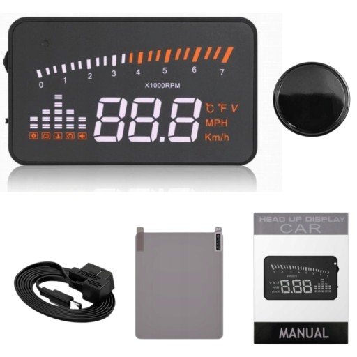 WYŚWIETLACZ NA SZYBĘ HUD head up display do auta OBD przezierny prędkość