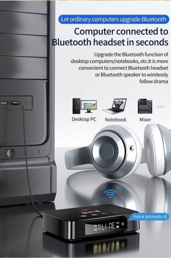 Służy do nadawania bezprzewodowego sygnału audio do słuchawek lub innego odbiornika bluetooth. Źródło dźwięku należy połączyć z adapterem za pomocą przewodu aux, S/PDIF lub RCA(w zestawie dołączona przejściówka aux/RCA).