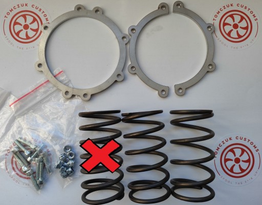 - 2 sprężyny wzmacniające o różnej mocy (ta skreślona jest identyczna jak oryginalna sprężyna w 14T, dwie kolejne są mocniejsze abyś mógł ustawić ciśnienie otwarcia WG na optymalnym poziomie - mniejsza liczba zwoi to mocniejsza sprężyna)