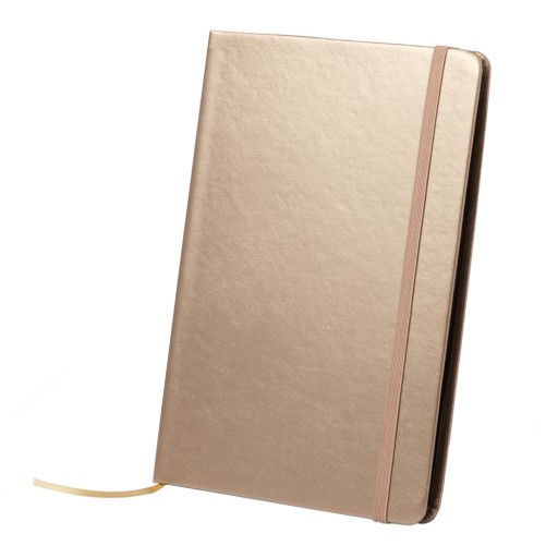 Notatnik A5 (80 pustych kartek), twarda okładka, tasiemka zakładkowa, elastyczna opaska do zamykania z trwałym znakowaniem w postaci nadruku z indywidualną grafiką oraz tekstem Zamawiającego.