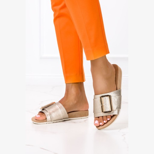 Złote klapki błyszczące ze złotą kalmrą Casu W19X6/G