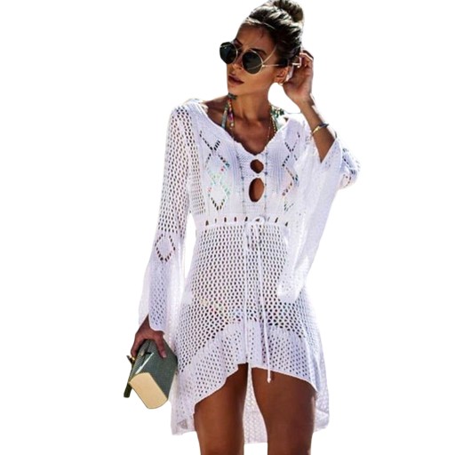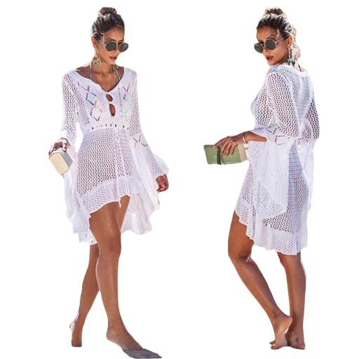 ПЛЯЖНАЯ ТУНИКА ЛЕТНЕЕ ПЛАТЬЕ КРУЖЕВНОЕ С ВЫРЕЗОМ
