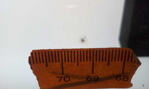 SZYBA Z NAPRAWIONĄ I ZABEZPIECZONĄ KROPKĄ W ZAZNACZONYM MIEJSCU.