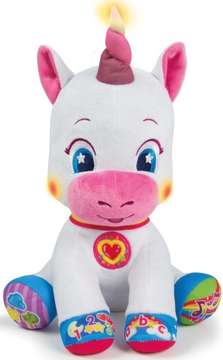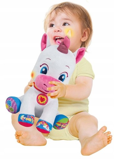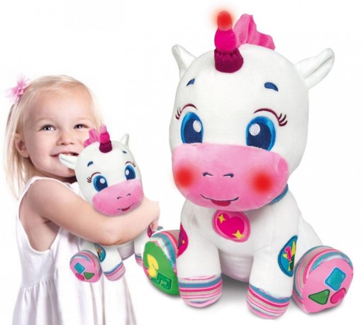 Słodziutki, interaktywny, pluszowy jednorożec, aby bawić się w świecie czułości. Dzieci bawiąc się z pełnym dźwięków i efektów przytulakiem, odkrywają pierwsze litery, cyfry i kształty w łatwy sposób.