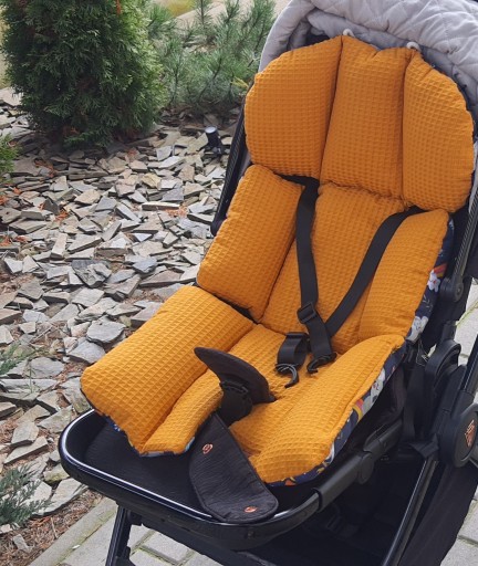Uniwersalna dwustronna wkładka do wózka wykonana z tkaniny wafel, jedna strona i bawełny drukowanej - druga strona