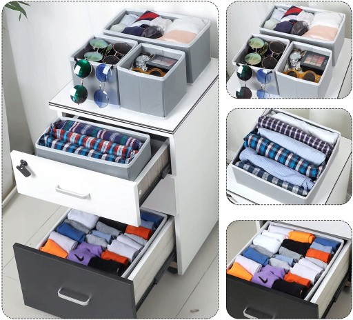 Ułatwiają nie tylko przechowanie, lecz także szybkie znalezienie w szufladzie potrzebnej rzeczy: skarpetek, bielizny, krawata lub paska. Wykonane z oddychającego materiału, dodane są również tekturki aby usztywnić pojemnik.