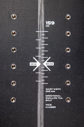 długość 159 cm, szerokość nose/tail 30.1/29.5 cm, waist 25.5 cm, promień 8.4/7.6 m, stance range 50.8– 66.1 cm, setback (-25), running length 1180, nadaje się dla osób z wagą 60+ kg