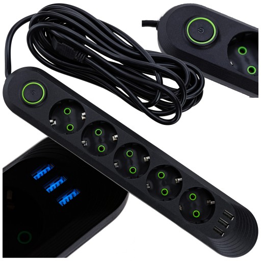 ПЕРЕКЛЮЧАТЕЛЬ ПИТАНИЯ УДЛИНИТЕЛЬНЫЙ КАБЕЛЬ ПРОТИВ ПЕРЕНАПРЯЖЕНИЯ 4,5 М 3 USB 5 РАЗЪЕМОВ