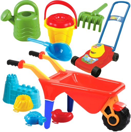 ТАЧКА + ПЕСОЧНЫЙ НАБОР 8 EL + КОСИЛКА + ЗАМОК