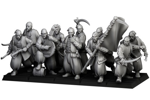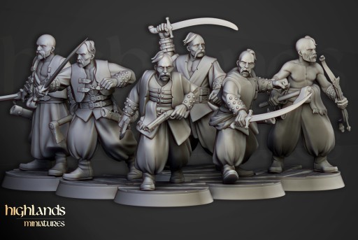 Przedmiotem oferty jest zestaw dziesięciu modeli Harbor Cossacks od Highlands Miniatures, wydrukowanych na drukarce 3D w technologii SLA.