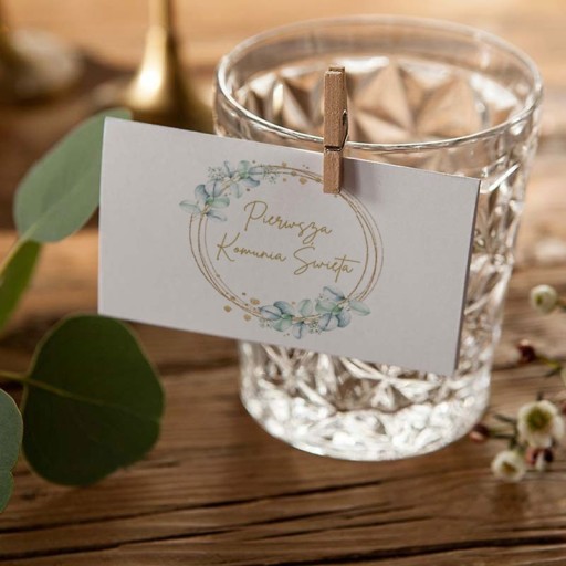 BILECIKI podziękowanie komunijne Wianuszek z eukaliptusem 10szt