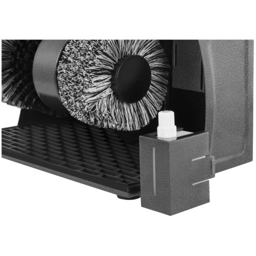 Dozownik na pastę z zaworem kulowym również jest bezobsługowy. Aby wycisnąć płyn, wystarczy delikatnie nacisnąć stopą kulkę. Uzupełnianie pasty to czynność bardzo prosta; urządzenie do czyszczenia butów ma plastikowy dozownik, który szybko wyjmiesz z obudowy.