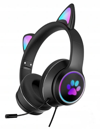 SŁUCHAWKI GAMINGOWE USZY KOTA MIKROFON LED RGB