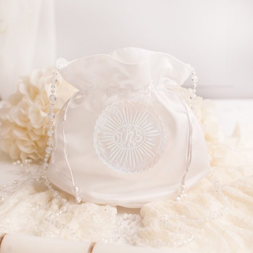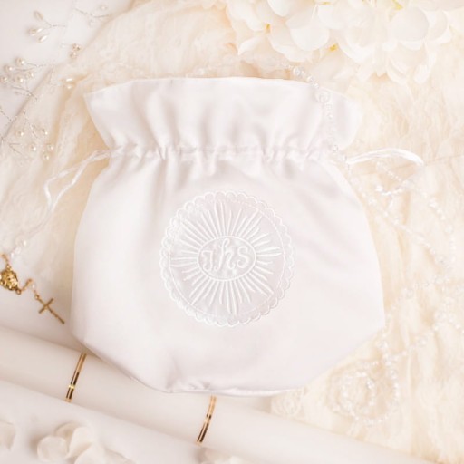 • Subtelność i tradycja - te słowa świetnie opisują ten komunijny produkt. Torebeczka została ozdobiona symbolem IHS. Produkt posiada wymiary 20 cm x 23 cm. Torebka zamykana i otwierana jest za pomocą ściągacza.