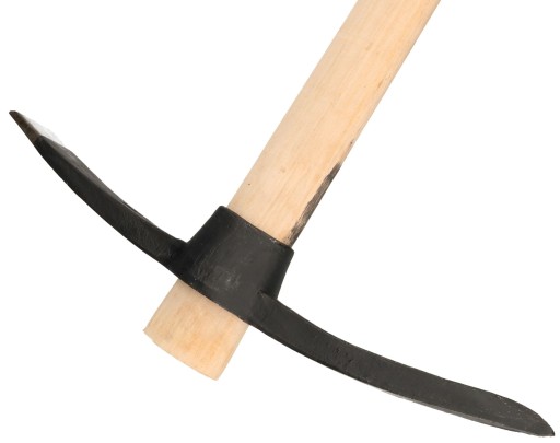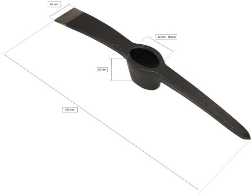- Posiada część roboczą, której jedna strona jest zakończona szpicem, a druga posiada ostrze, które nadaje się do urabiania miękkich skał.