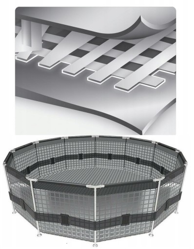Ściany basenu są zbudowane z DuraPlus ™, materiału wzmocnionego rdzeniem z siatki poliestrowej i dwóch warstw PVC o dużej grubości, co zapewnia doskonałą wytrzymałość i trwałość