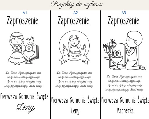 Zaproszenie na komunię, komunijne - zestaw 10 szt.