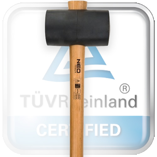 Młotek gumowy NEO (nr ref. 25-054) o masie 1200 g i średnicy obucha 90 mm znajduje swoje zastosowanie głównie podczas prac budowlanych, wykończeniowych, montażowych i blacharskich, ponieważ guma nie uszkodzi kruchego materiału. Trzonek wykonany z wytrzymałego drewna hikorowego. Gumowy obuch zamocowany za pomocą klinu na stożkowym trzonku, co zapewnia bezpieczeństwo podczas użytkowania. Gwarantem wysokiej jakości i niezawodności produktu jest certyfikat TÜV Rheinland. Marka NEO spełnia oczekiwania profesjonalistów.