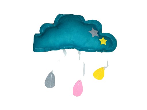Filcowa chmura ze światełkami. Po włączeniu kilka diod led zapala się. Zasilanie bateryjne w zestawie.