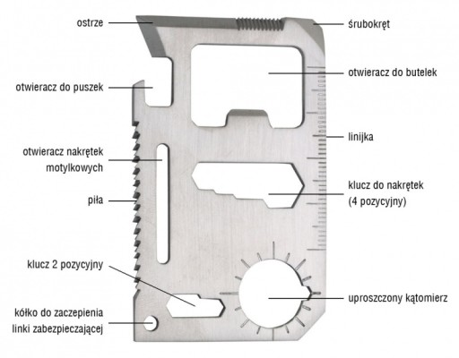 ✅Karta survivalowa to multitool który dzięki niewielkim rozmiarom możemy schować w portfelu.