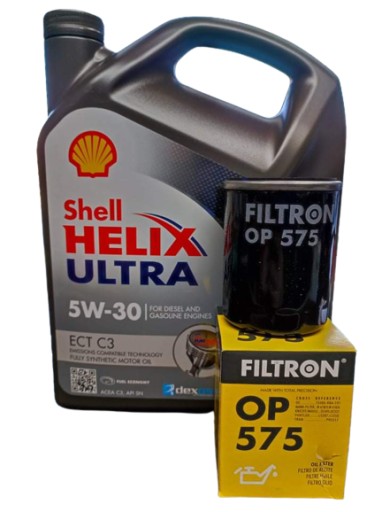Zestaw Shell 5W30 ECT C3 + FIltr oleju FILTRON OP 575 przeznaczony min dla benzynowych silników marki Honda.