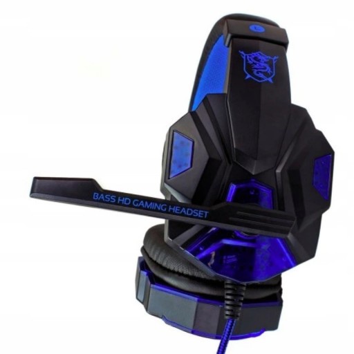SŁUCHAWKI GAMINGOWE Z MIKROFONEM PODŚWIETLANE NIEBIESKIE