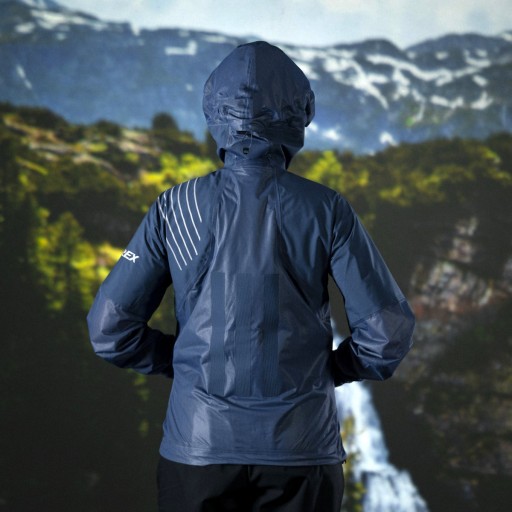 Kurtka jest podzielona na lekkie strefy oddychające (dół z przodu, plecy, kaptur, rękawy) i wzmocnione