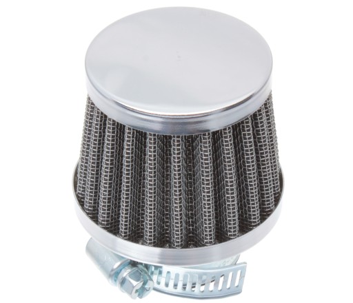 OPIS: TUNINGOWY FILTR POWIETRZA, STOŻEK, CHROMOWANY, METALOWY Z SIATKĄ, ROZMIAR M. CAŁOŚĆ POSIADA SPECJALNĄ OBEJMĘ MOCUJĄCĄ. MOŻNA GO CZYŚCIĆ W BENZYNIE ORAZ STOSOWAĆ SPECJALNE PIANKI I OLEJE DO FILTRÓW. GUMA FILTRA ZDEJMOWANA.