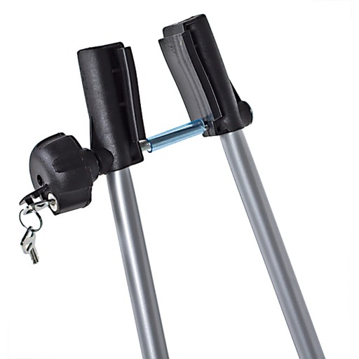 - Uchwyt wyposażony jest w gałkę z kluczykiem, która blokuje klamrę, chroniąc rower przed kradzieżą