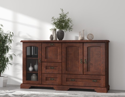 Dębowe komody z barkiem to niezwykle praktyczne połączenie dwóch produktów – uniwersalnej komody i eleganckiego barku na kieliszki, akcesoria i trunki.