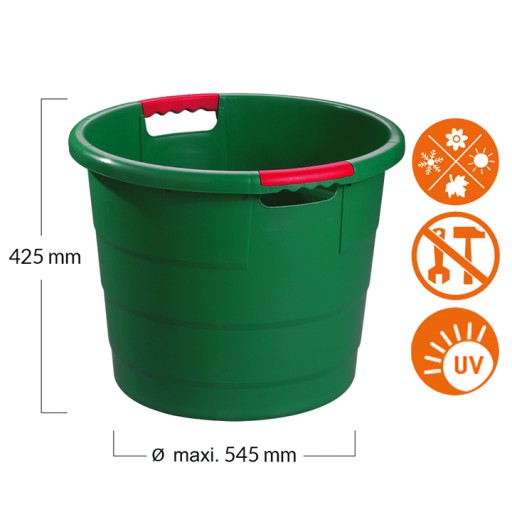 Niezbędne narzędzie każdego działkowicza i właściciela domu z ogrodem. Okrągły kosz TONI niemieckiej marki Garantia to uniwersalny pojemnik z rączkami to zastosowania w całorocznych pracach ogrodowych.