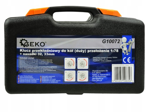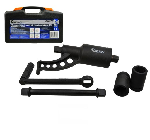 Przedmiotem aukcji jest klucz do kół z przełożeniem 1:78 marki Geko, który generuje moment 6000Nm. Klucz jest niezbędnym narzędziem wszędzie tam, gdzie mamy do czynienia z silnie zakręconymi śrubami mocującymi, których odkręcenie możliwe było tylko przy użyciu klucza pneumatycznego czy nieporęcznych przedłużek.
