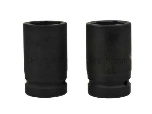 Trzpień 1" jest kompatybilny z wszystkimi nasadkami 1" stosowanymi w innych narzędziach. Wystarczy nałożyć jedną z dwóch dostępnych nasadek 32mm lub 33mm, poluzować śrubę kluczem, następnie użyć dołączonej przedłużki, aby błyskawicznie odkręcić każdą śrubę.