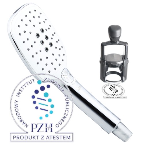 Lekka bezpieczna dla wanny słuchawka prysznicowa trzy zakresowa SOTBE LARK WHITE QUADRO z systemem ANTI CALC kolor biały i chrom.