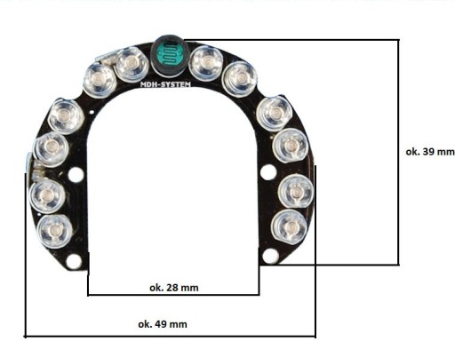 OŚWIETLACZ IR PODCZERWIENI 850 nm 10 m REFLEKTOR PODCZERWIENI 49 x 39 mm 12 DIOD MODUŁ FY-12