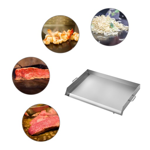 Tutaj oferujemy Państwu płytę górną ze stali nierdzewnej. Świetnie nadaje się do siedzenia na grillu węglowym lub gazowym do gotowania wszelkiego rodzaju potraw. Gotuj śniadanie, lunch lub kolację na świeżym powietrzu, utrzymuj kuchnię w czystości od oleistych oparów i bez nieprzyjemnych zapachów. Dzięki temu możesz gotować naleśniki, bekon, jajka, warzywa, krewetki, łososia i tak dalej. Idealny na biwak, imprezę, grilla i inne aktywności.