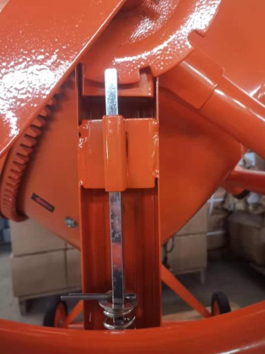 Betoniarka posiada koło regulujące przechył bębna z nożnym hamulcem, co ułatwia korzystanie z urządzenia. Regulacja posiada kilka ustawień, dzięki czemu praca staje się przyjemniejsza.