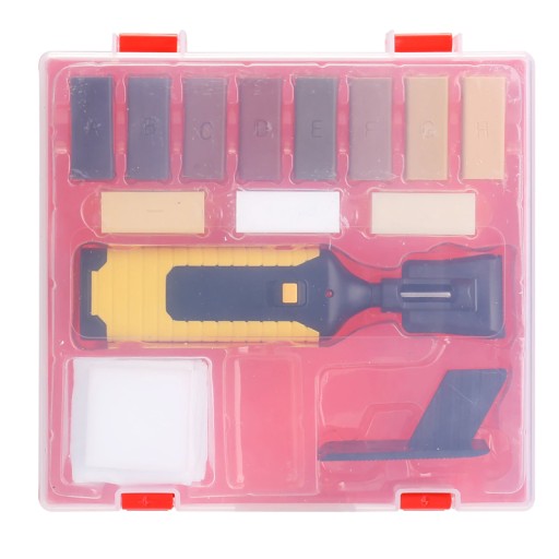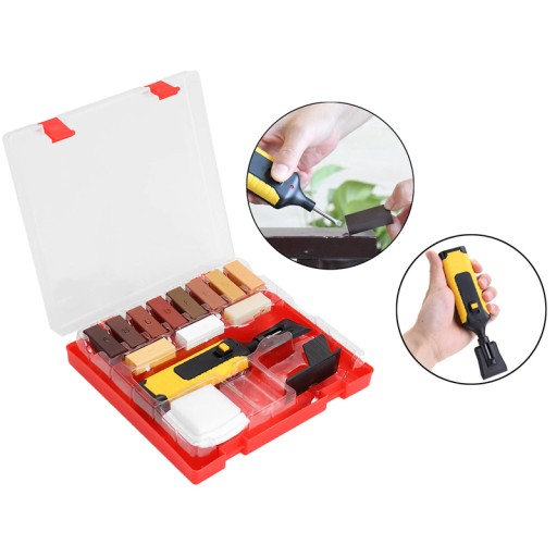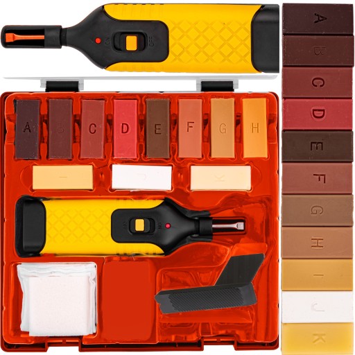 Zestaw umożliwi ci samodzielną naprawę powierzchni drewnianych np. paneli podłogowych, parkietu, ram okiennych oraz mebli. Sprawdzi się w twoim domu i sprawi, że twoje meble odzyskają swoje walory. Zestaw naprawi różne rysy, nawiercenia, obtarcia czy pęknięcia. Doskonale sprawdzi się dla osób mających dzieci, które narzekają na uszkodzenia przez nich wyrządzone. W zestawie znajdziesz aż 11 szt wosku różnego koloru, szpachelkę, polerkę, czyścik, urządzenie do topienia wosku, skrobak, ściereczkę.