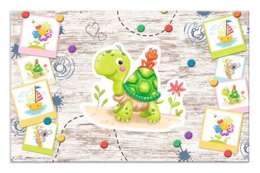 Praktyczna podkładka na biurko z kolorowymi obrazkami. Uchroni blat biurka przed zniszczeniem podczas odrabiania lekcji lub prac plastycznych.