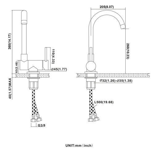 - Funkcja: zakręt wylotu wody może być 360 ° obrotu, Obrót do przodu o 90° + obrót do tyłu o 90°