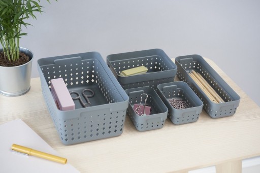 Organizery SEOUL to nowa edycja naszego popularnego asortymentu koszyków Seulu. Organizery oferują idealne rozwiązanie do przechowywania wszystkich drobiazgów w łazience, kuchni, biurze lub nawet przedszkolu. Organizery są dostępne w 4 rozmiarach i różnych kolorach, dzięki czemu spełnione są różne wymagania dotyczące przechowywania. Otwory w kształcie rombu nadają mu nowoczesny charakter i półprzezroczystość.
