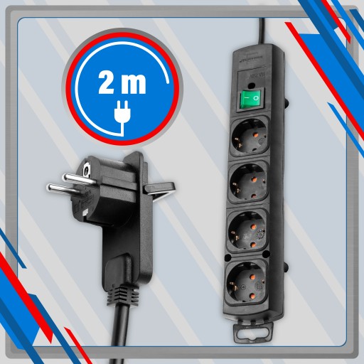 Listwa zasilająca z wyłącznikiem 2m PŁASKA WTYCZKA
