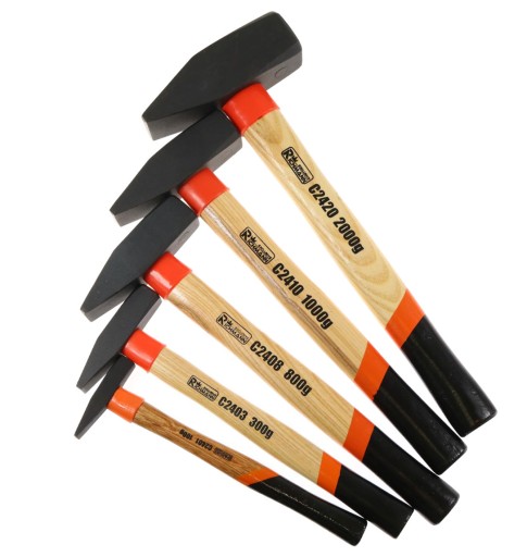 Młotki ślusarskie z trzonkami wykonanymi z trwałego drewna jesionowego.
